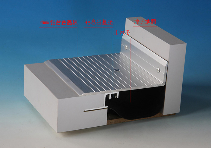 地面变形缝——采用滑杆确保变形缝装置变位时仍能保持中心及原有位置。确保50%位移量 ;盖板自定中心,接合平整,华丽,美观大方